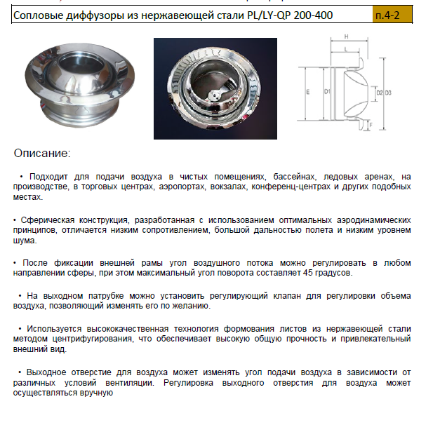 Сопловой диффузор из нержавеющей стали PL/QY-QP 400