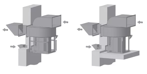 Вентиляторы должны устанавливаться вне обслуживаемого помещения и за пределом зоны постоянного пребывания людей.